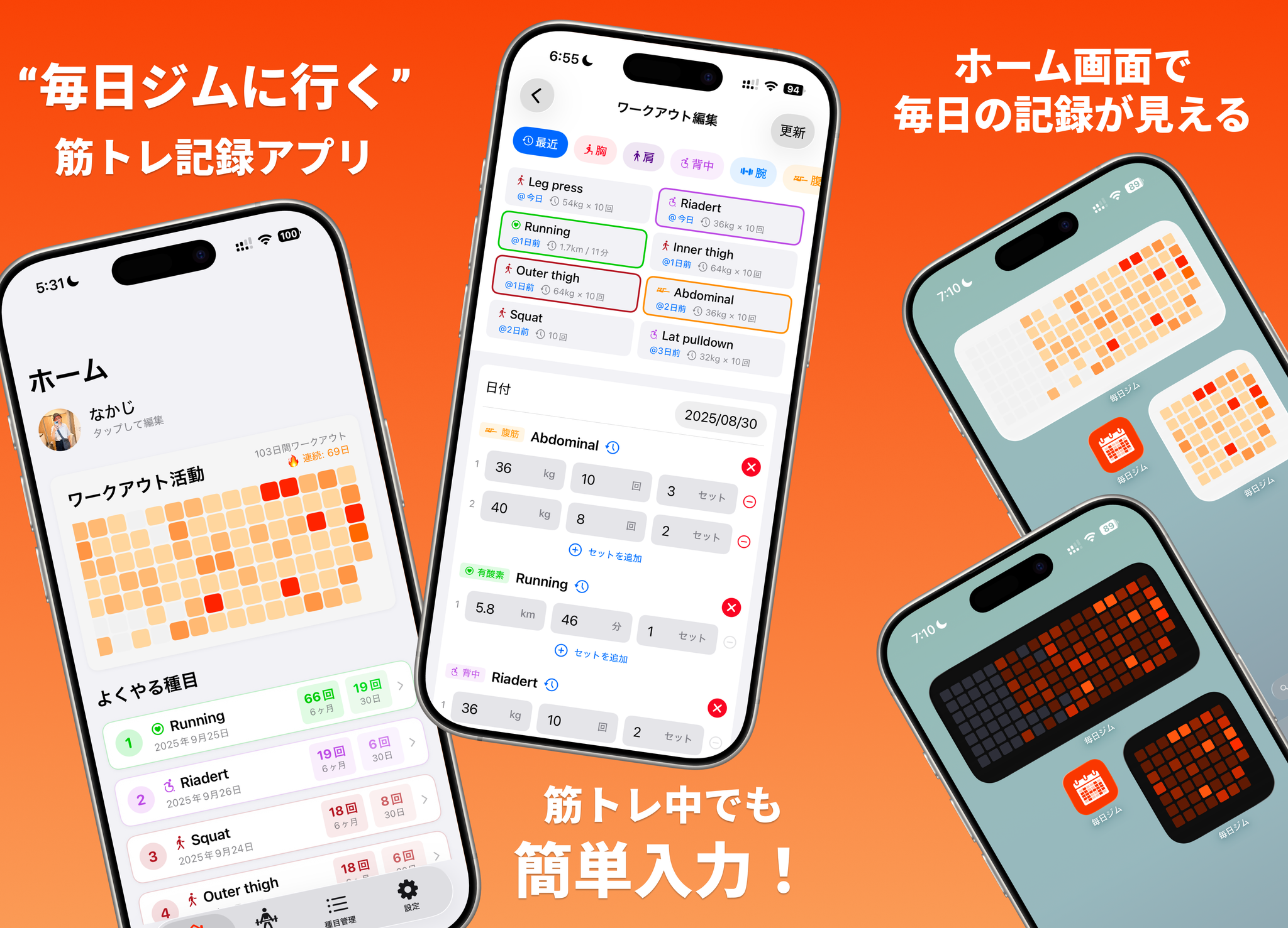毎日ジムに行くことをコンセプトにした筋トレ記録アプリ